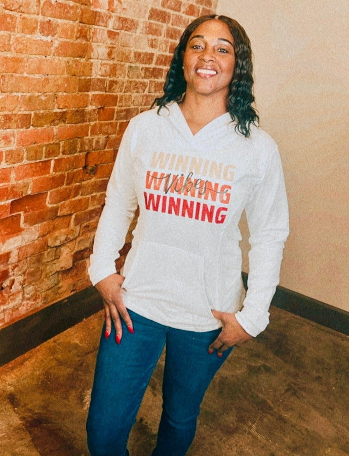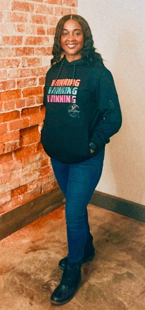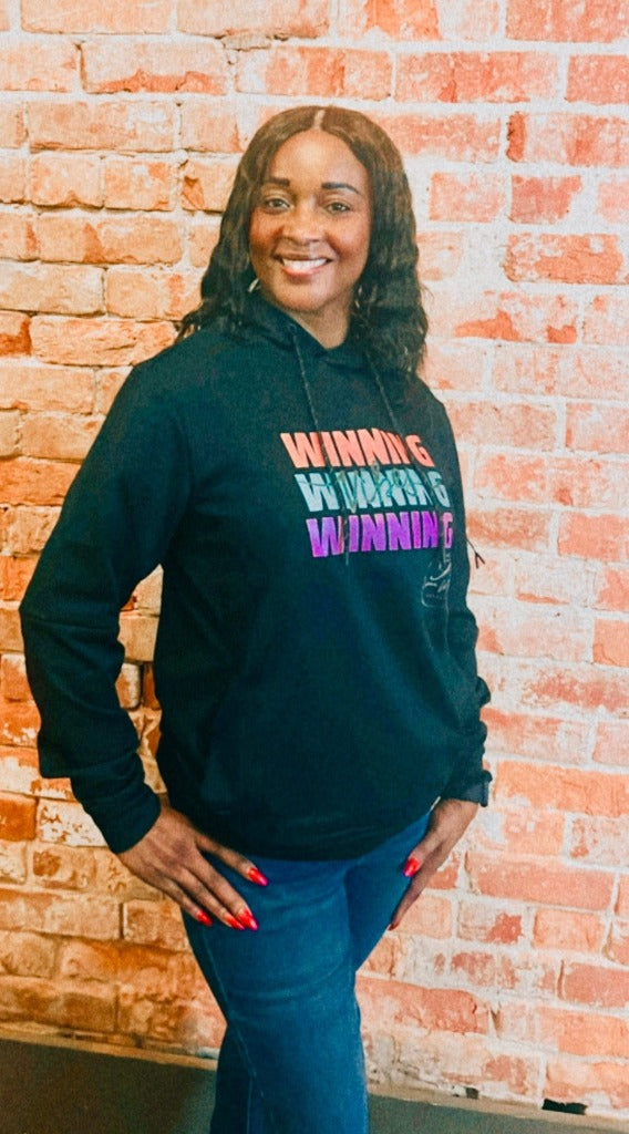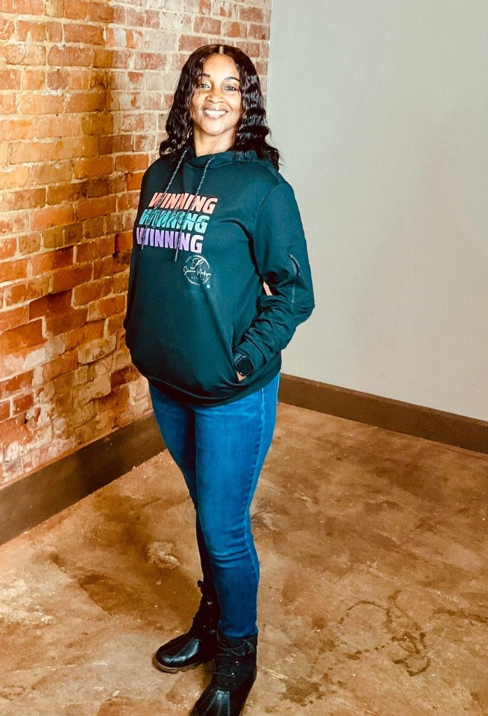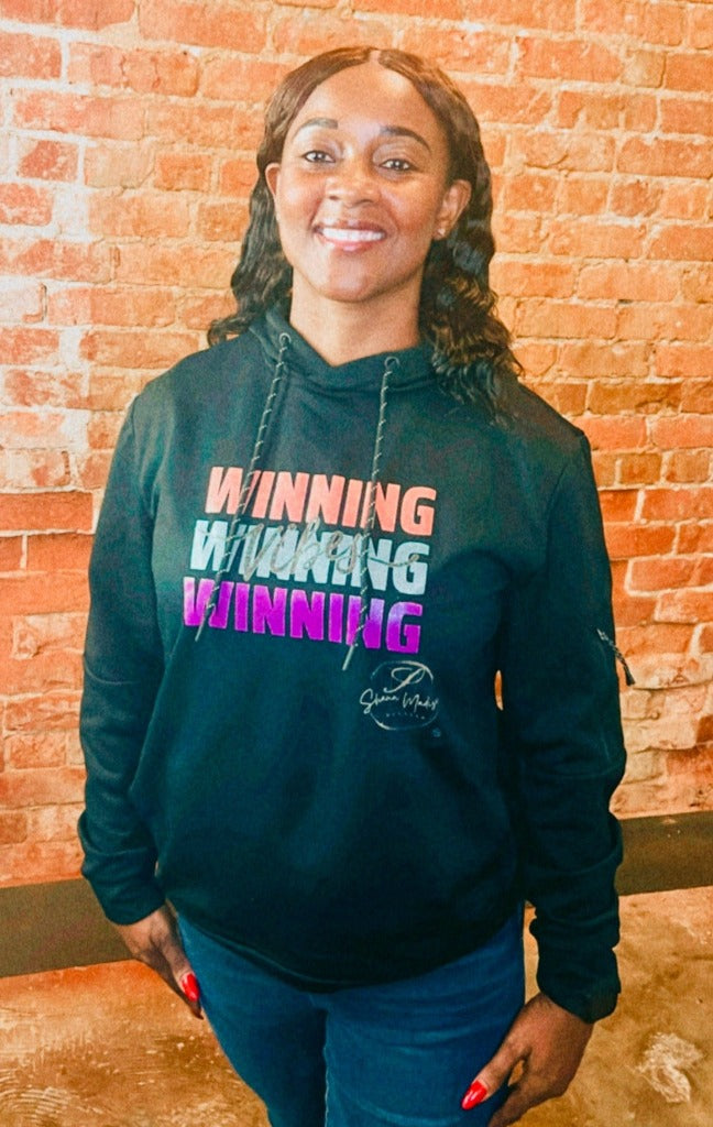 Experience a winning sensation with the Glittered Ladies Winning Vibes Hoodie. Meticulously designed using a blend of polyester and cotton, this hoodie offers unmatched comfort and lasting quality. Featuring a loose fit and adjustable hood, it ensures a perfect fit while the side zipper pocket adds a sleek touch. Elevate your day with the luxurious style of this hoodie from the Shaun Madison Winning Collection.