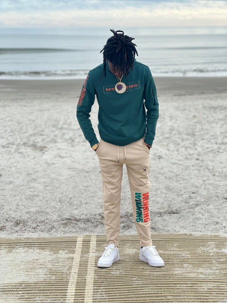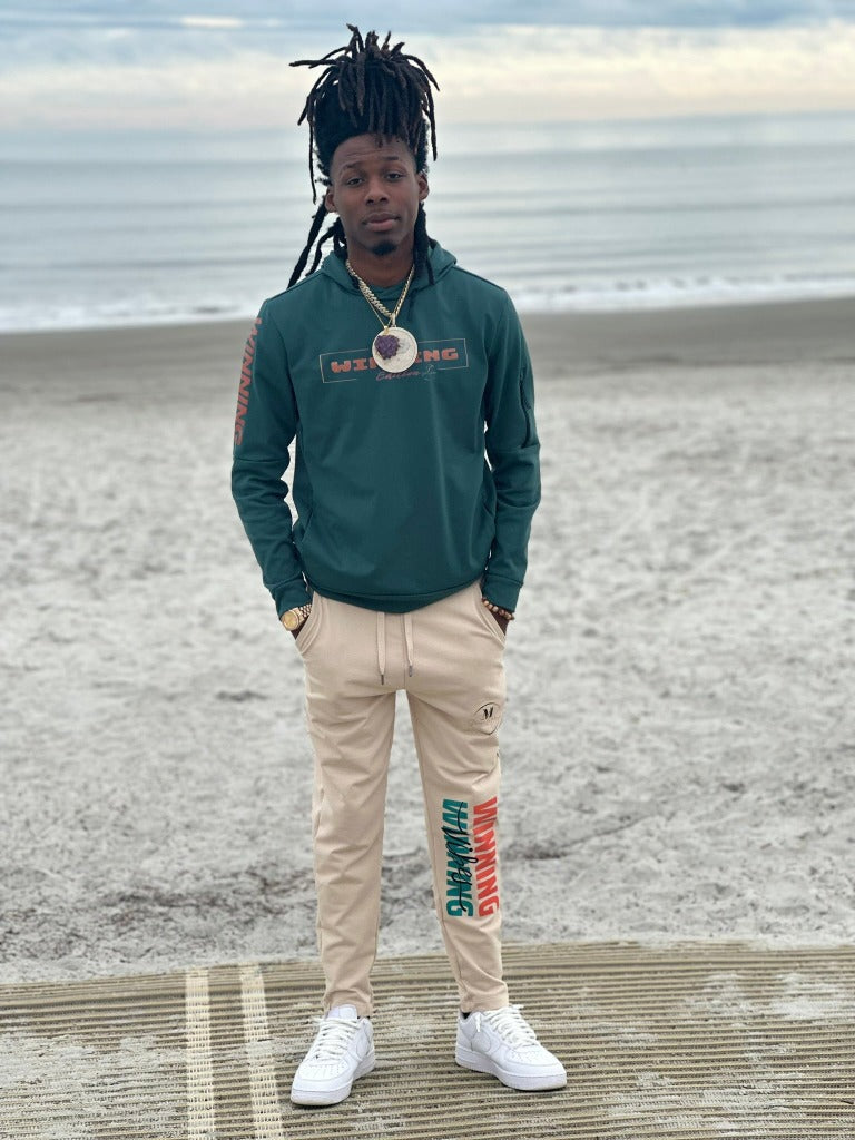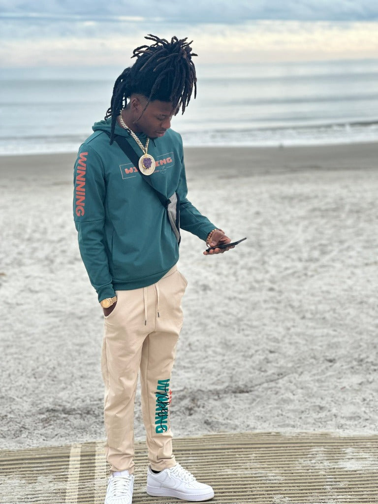 Elevate your style with the I'm Winning Edition Set, where comfort meets sophistication. Crafted from a luxurious blend of polyester and cotton, this ensemble guarantees unparalleled relaxation with its effortlessly chic loose-fit hoodie and joggers. The hoodie features a stylish drawstring hood and a convenient zip pocket on the sleeve, while the joggers offer spacious side pockets and an adjustable drawstring for the perfect fit. Whether you’re crushing your workout or unwinding after a long day, you’ll look and feel fantastic. Embrace the champion within and get ready to conquer every moment!